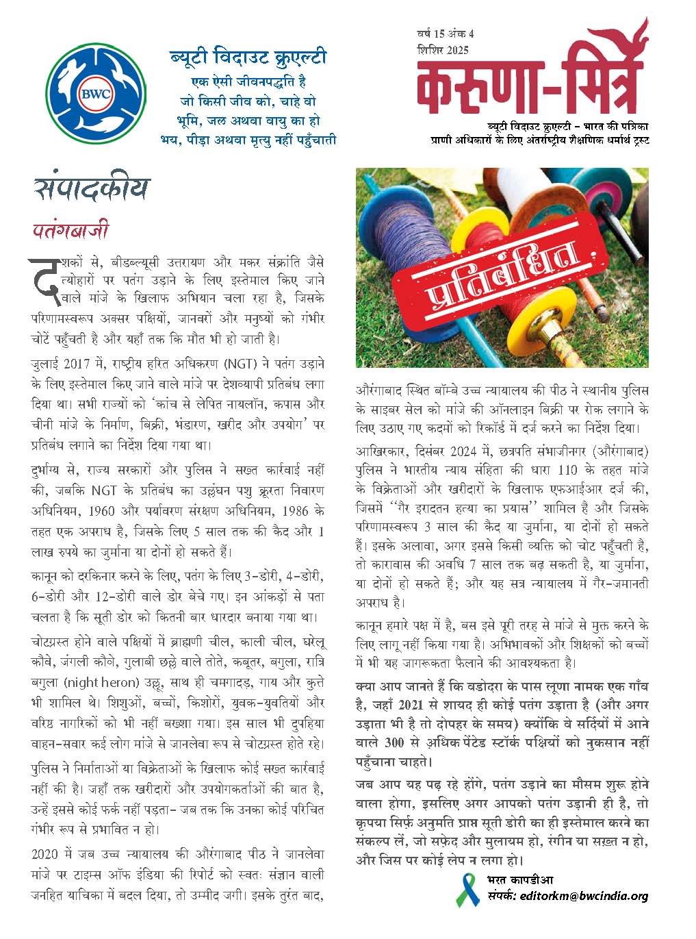 was first published in 1977. Distributed free to all members, it is the only animal rights magazine in India which contains unexaggerated and factual information.