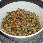 Add chickpeas, potatoes, tomatoes, chaat powder, lime juice, coriander and salt.